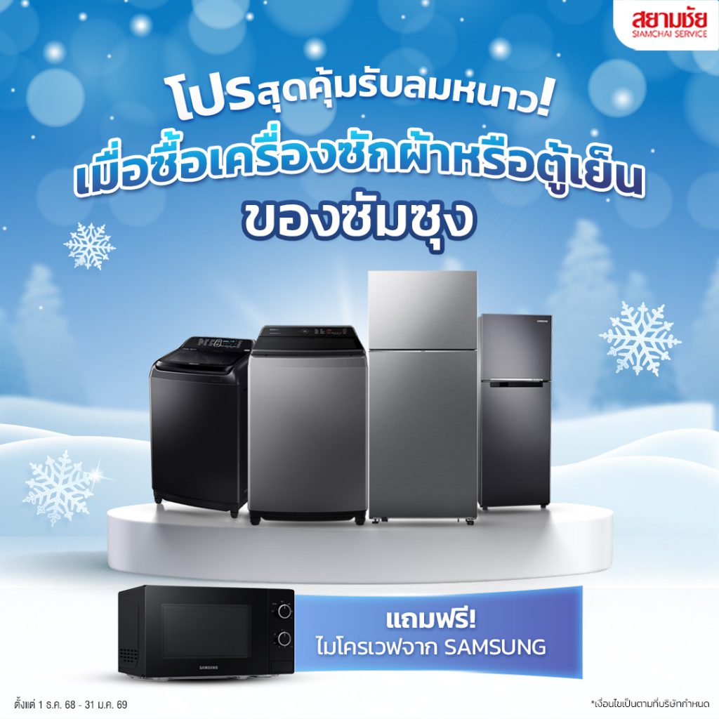 สยามชัยพลาซ่า > โปรโมชัน > ซื้อเครื่องซักผ้าหรือตู้เย็นซัมซุง แถม ไมโครเวฟ ฟรี!!
