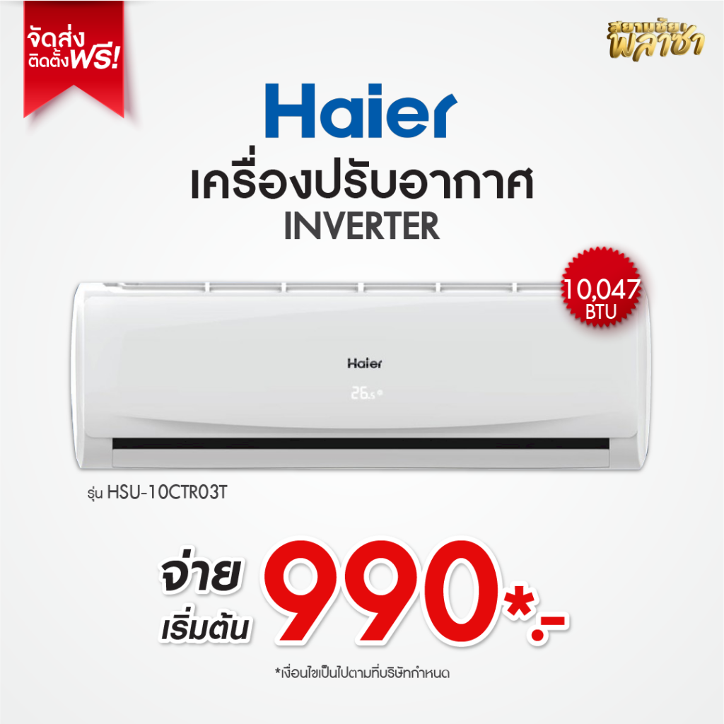 สยามชัยพลาซ่า > สินค้าทั้งหมด > สินค้าแนะนำ > เครื่องปรับอากาศ Haier ขนาด 10,047BTU