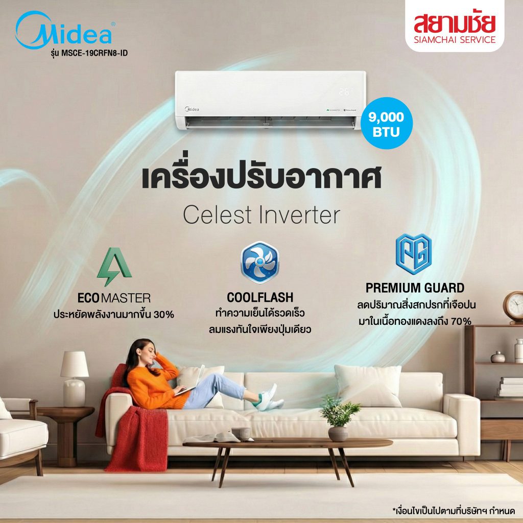 สยามชัยพลาซ่า > สินค้าทั้งหมด > สินค้าแนะนำ > แนะนำ!! เครื่องปรับอากาศ Midea ขนาด 9,000 BTU